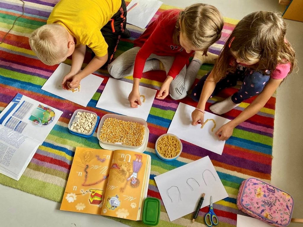 Listí na zemi se proměnilo v barevný koberec a děti každý den nacházejí nové poklady – kaštany, žaludy, šišky i nejbarevnější listy. Společně z nich staví domečky pro skřítky a vymýšlejí příběhy, kdo by v nich mohl bydlet.
